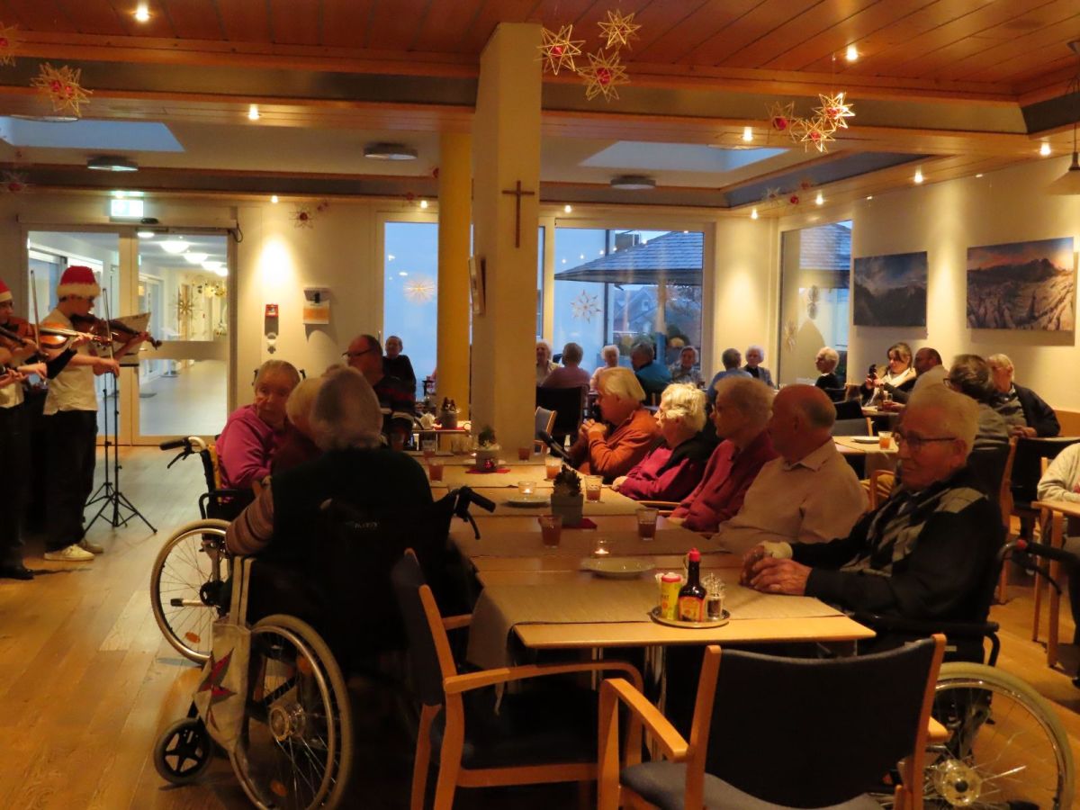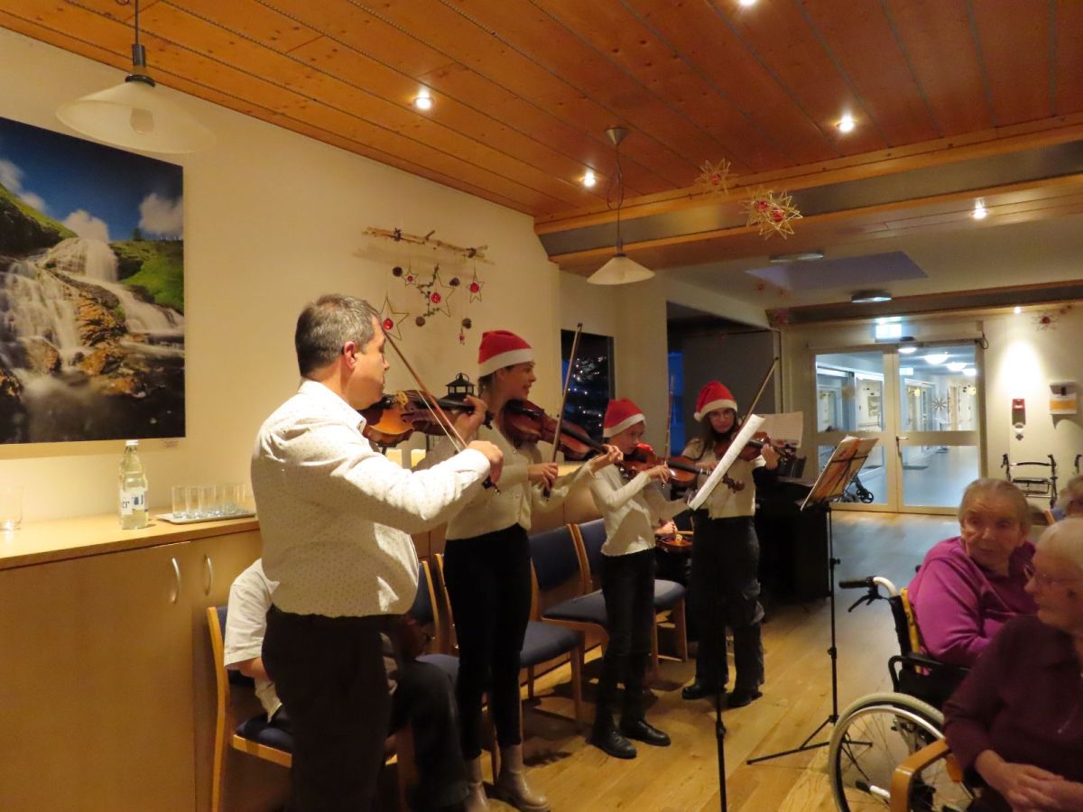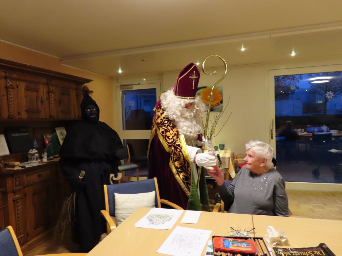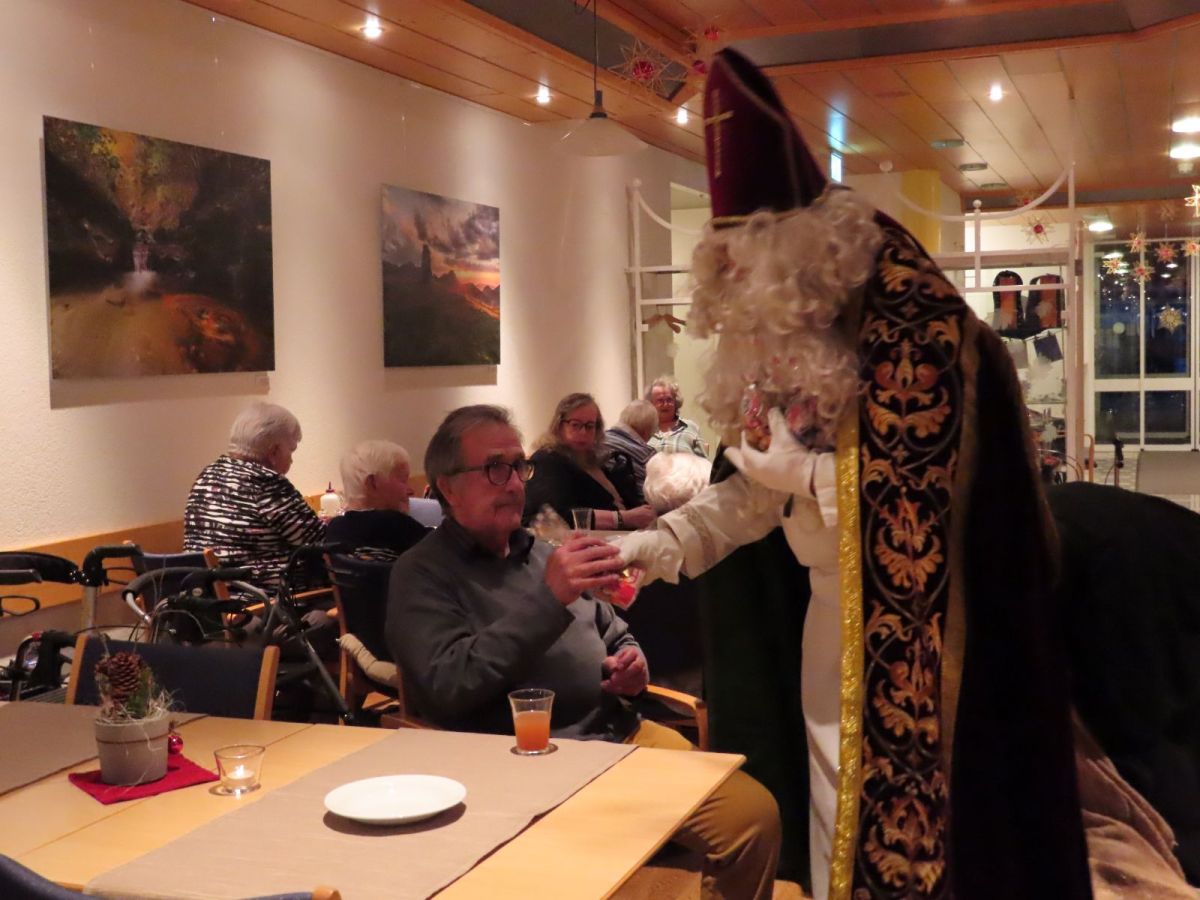 Unsere Bewohner:innen, Mieter:innen und Gäste warteten gespannt auf den Samichlaus. Und da kam er pünktlich in schönem, währschaftem Samichlaus-Gwand mit seinem Schmutzli. Eva Rossacher las zwei Samichlausgeschichten von Kari Imfeld vor. Der Samichlaus besuchte mit dem Schmutzli die Wohngruppe Älggi und beschenkte alle Bewohner:innen mit einem feinen Samichlaus-Säckli. Das Geigen-Ensemble der Musikschule Kerns hat den musikalischen Rahmen gestaltet. Ihnen allen und dem Samichlaus ein herzliches Dankeschön fürs Kommen.