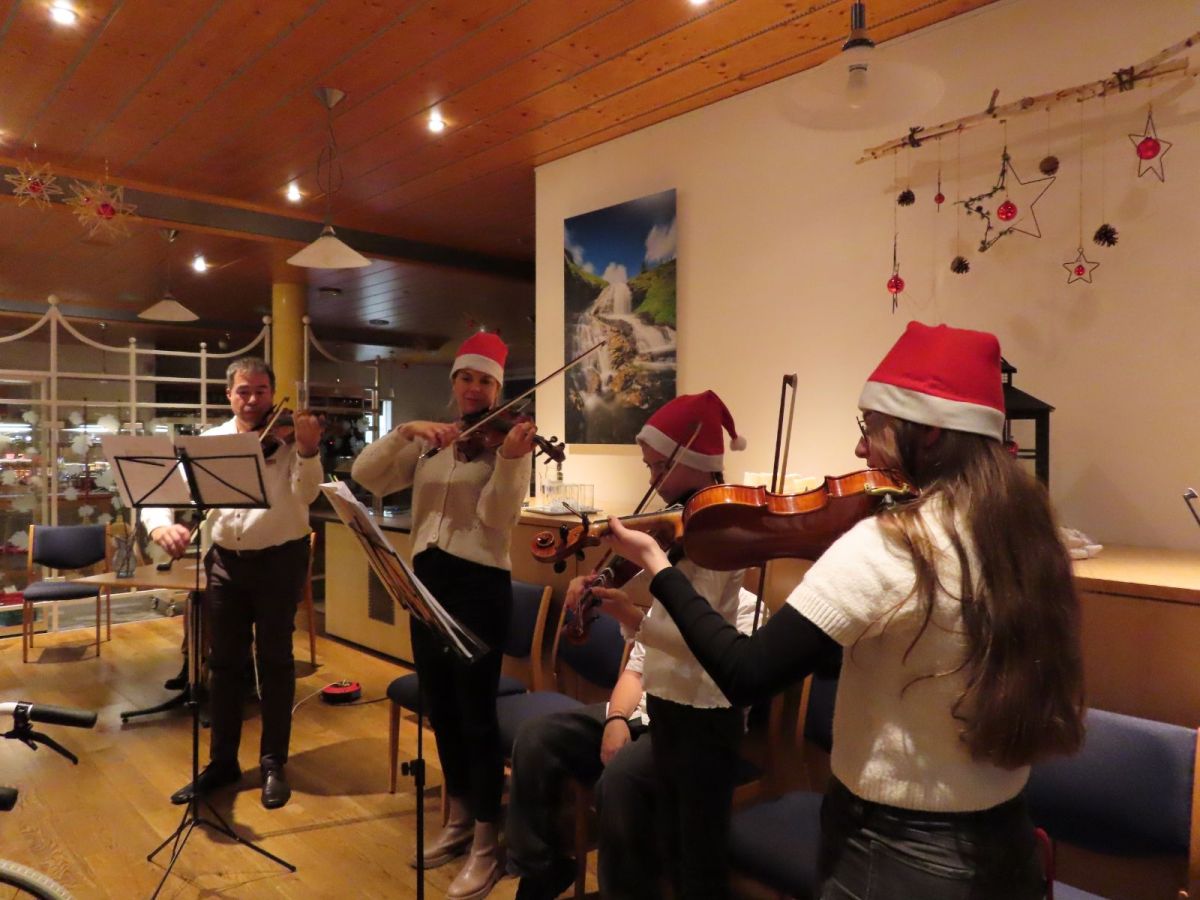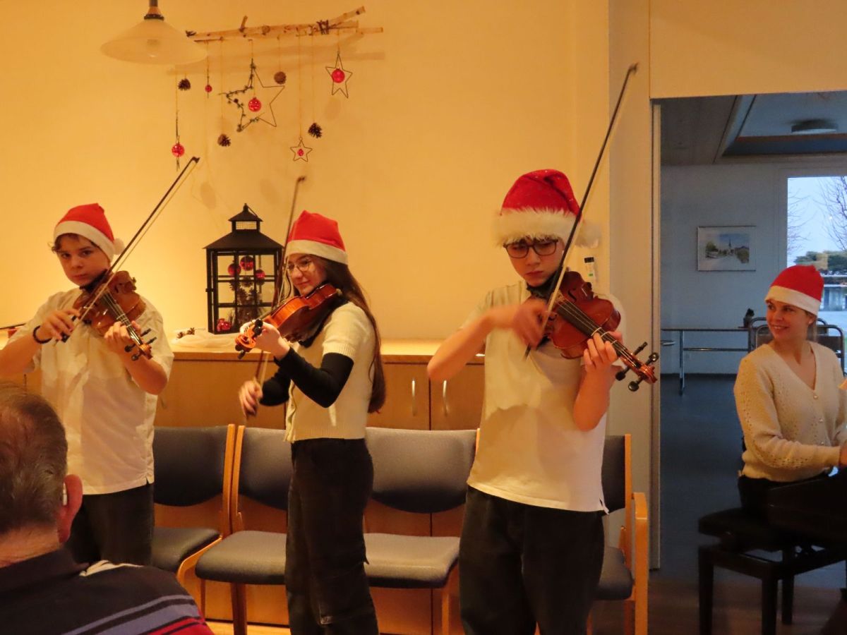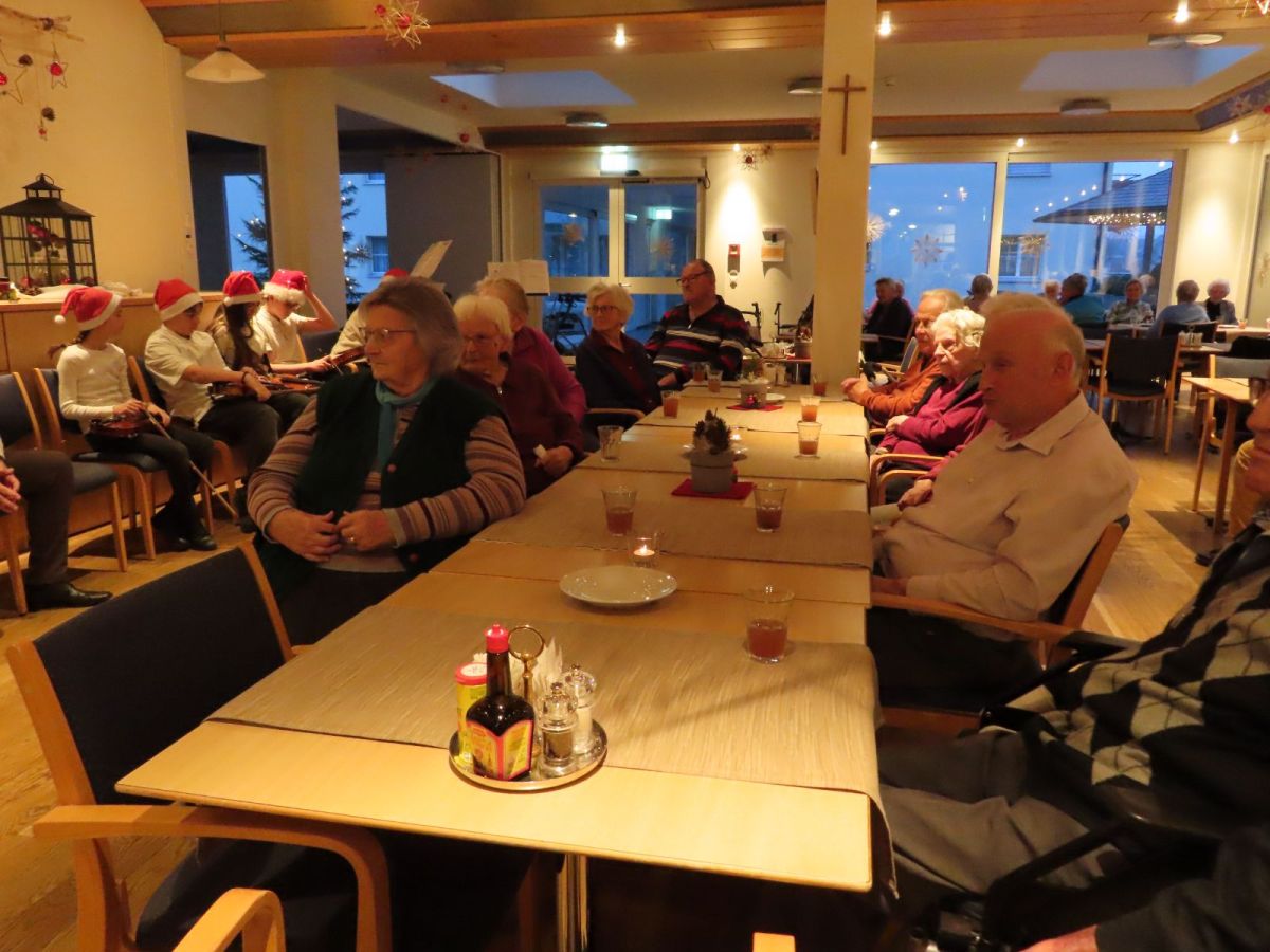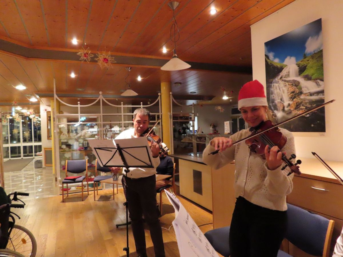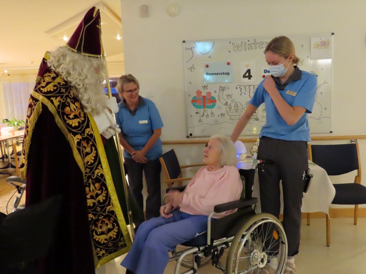 Unsere Bewohner:innen, Mieter:innen und Gäste warteten gespannt auf den Samichlaus. Und da kam er pünktlich in schönem, währschaftem Samichlaus-Gwand mit seinem Schmutzli. Eva Rossacher las zwei Samichlausgeschichten von Kari Imfeld vor. Der Samichlaus besuchte mit dem Schmutzli die Wohngruppe Älggi und beschenkte alle Bewohner:innen mit einem feinen Samichlaus-Säckli. Das Geigen-Ensemble der Musikschule Kerns hat den musikalischen Rahmen gestaltet. Ihnen allen und dem Samichlaus ein herzliches Dankeschön fürs Kommen.