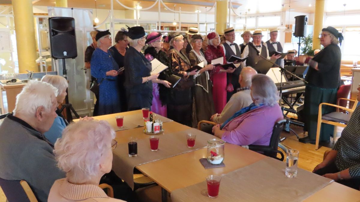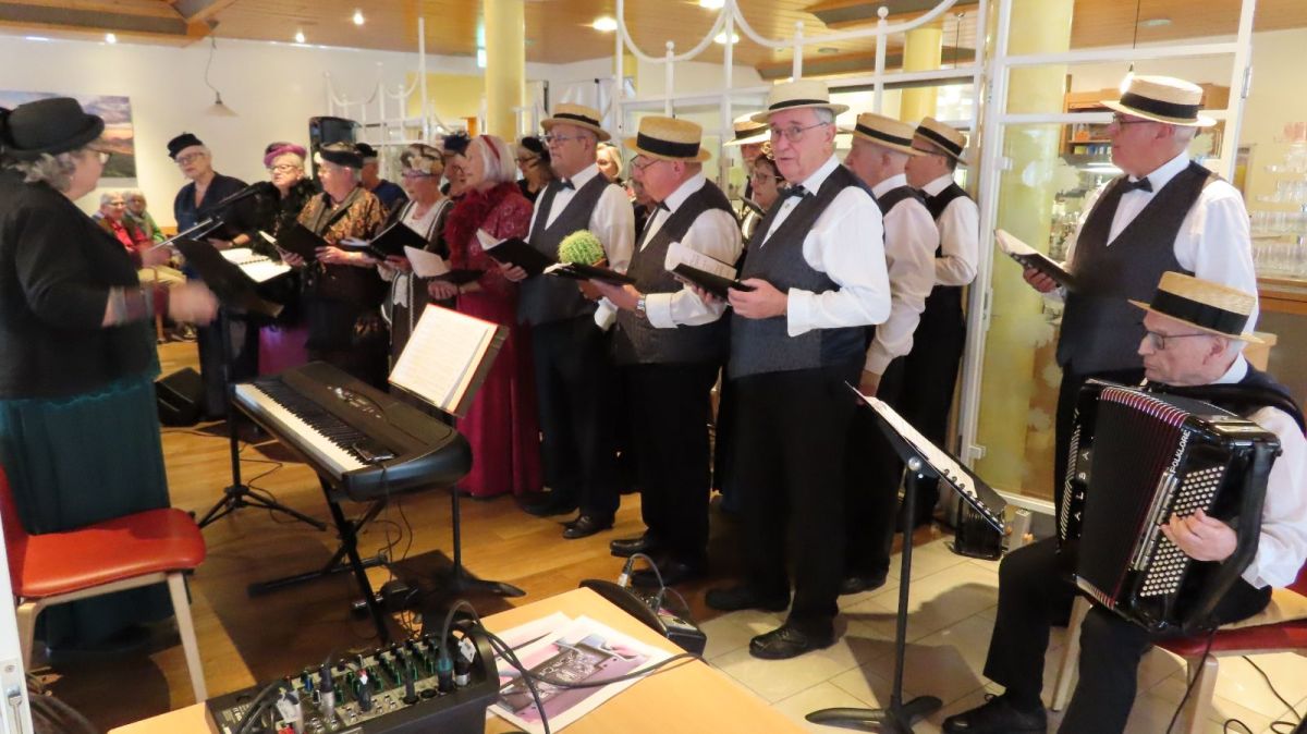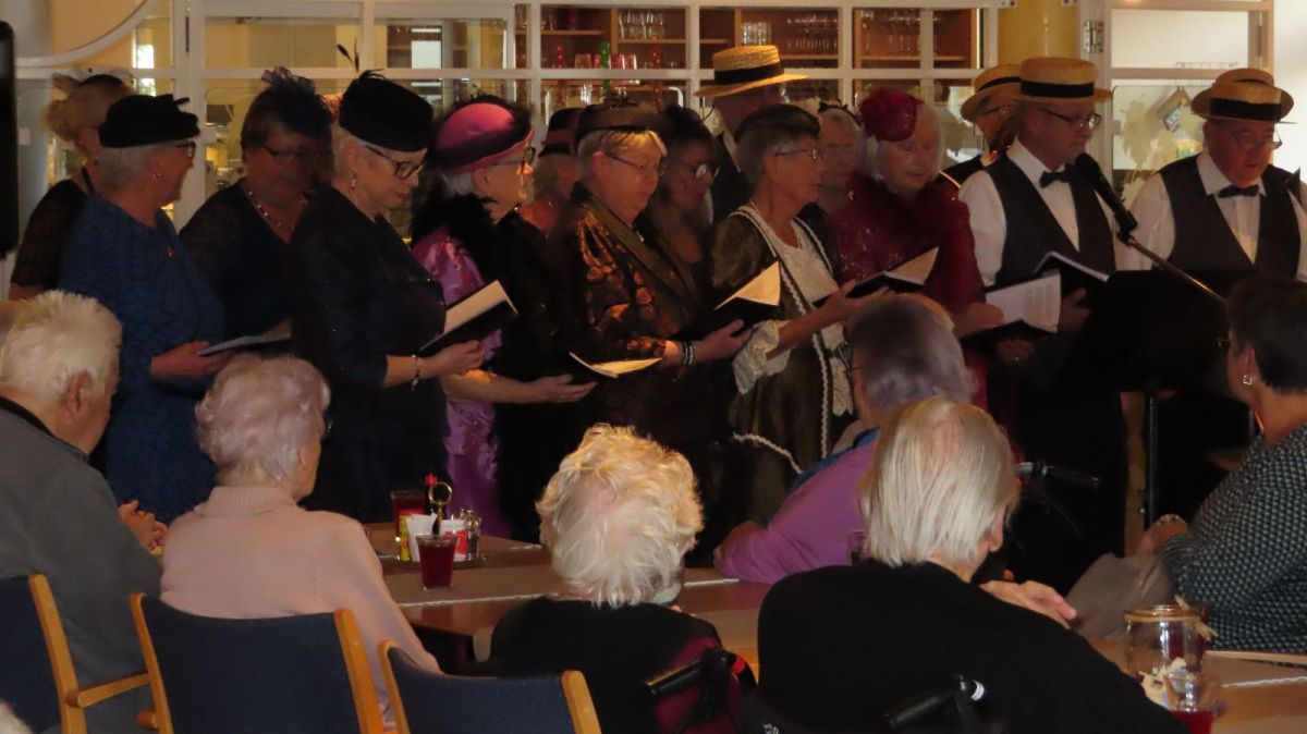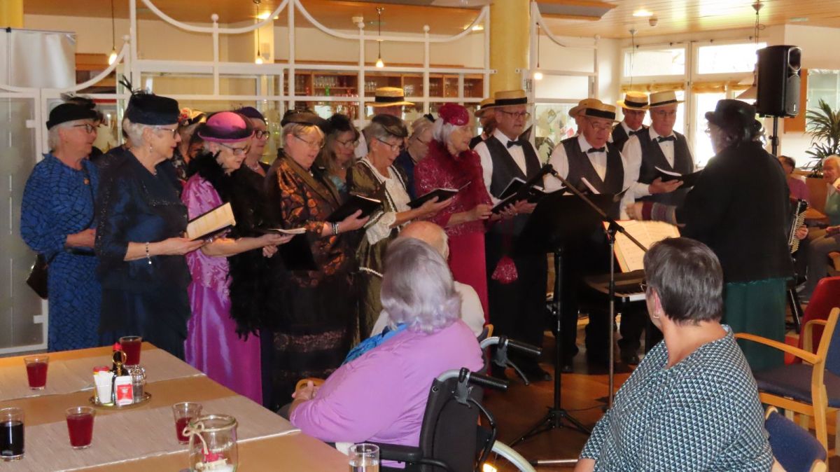 Ein bunter Strauss an beliebten altbekannten Schlagern und Evergreens: Dies bot das Evergreen-Chörli in ihrem frohen Auftritt in nostalgischen Kleidern - als Gesang, durchmischt mit fröhlichen Show- und Tanz-Einlagen. Unsere Bewohner liessen sich spontan in Ihre Jugendzeit entführen, in die Zeiten voll schönster Erinnerungen.