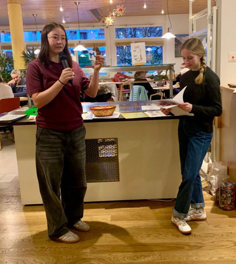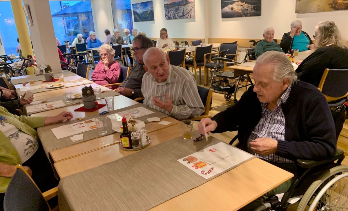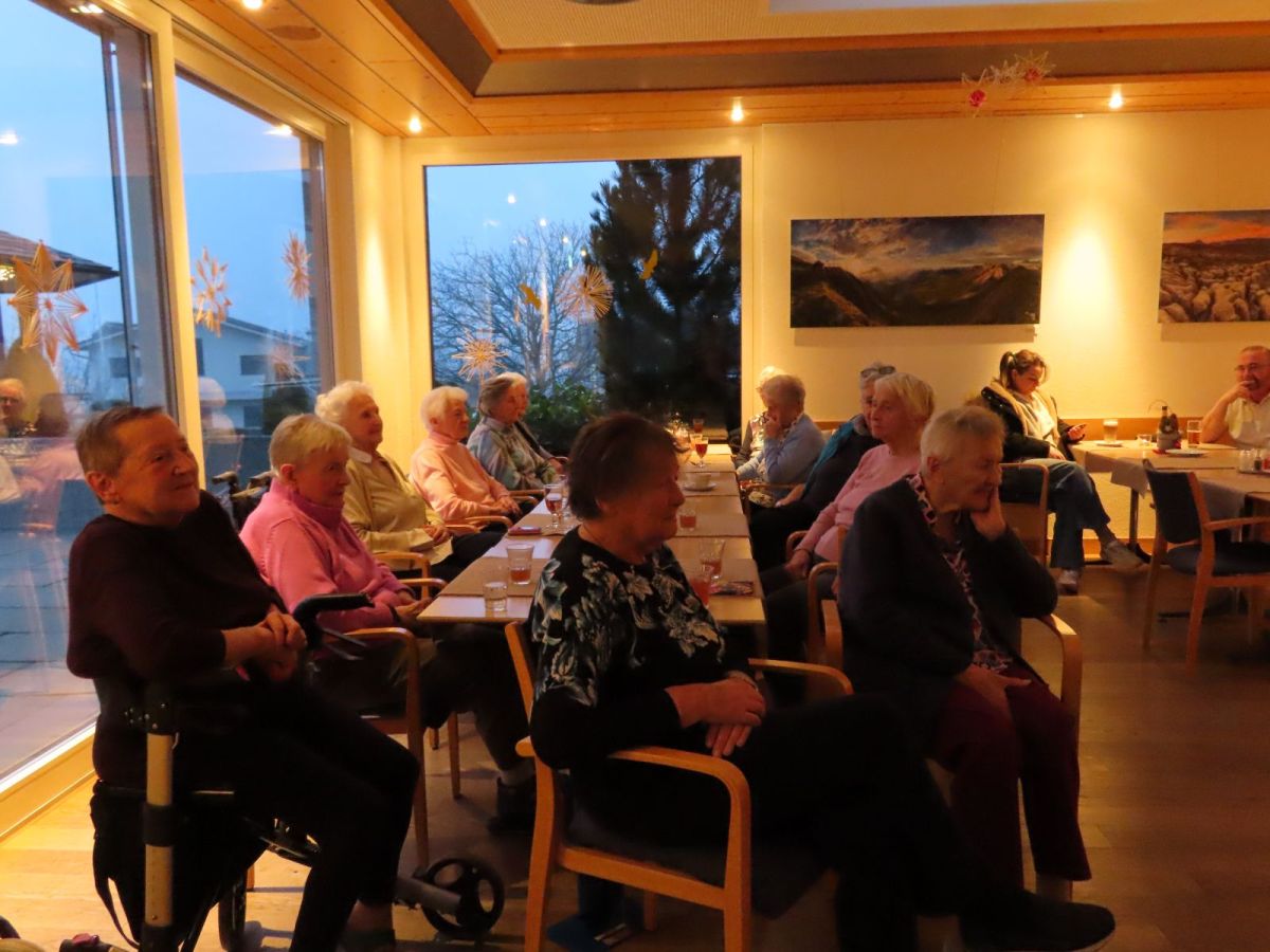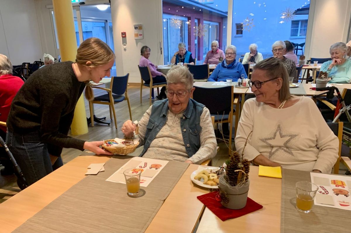 Am vergangenen 1. Adventssonntag, haben unsere 1. Lehrjahr-FaGe-Lernenden, Andrea und Fabienne, die Adventsfeier mit unseren Bewohnenden gestaltet. Sie haben ein umfangreiches Programm zusammengestellt. Dabei waren Weihnachtsgedichte und Weihnachtslieder mit Gitarrenbegleitung durch Irene. Extra gestaltet haben die beiden ein Weihnachtslotto-Spiel, bei welchem die Bewohner gerne mitgemacht haben. Das ist noch nicht alles. Die Bewohner durften ihre Wünsche in Kugelform auf dem Wunsch-Tannenbaum platzieren. Die Bäume sind vor dem Aktivierungsraum aufgehängt. Das war eine kurzweilige und persönlich gestaltete Adventsfeier für unsere Bewohnenden. Herzlichen Dank an Andrea und Fabienne für eure Vorbereitung und Durchführung und an Karin und Irene für eure Unterstützung.