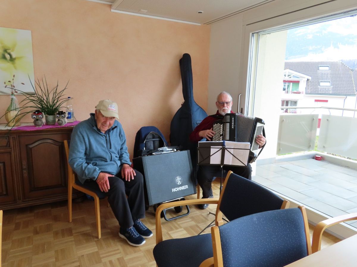 Noldi und Toni haben mit ihrer Handorgel und mit Versen für beste Unterhaltung für unsere Geburtstags"kinder" gesorgt und haben mit unseren beiden Aktivierungsfrauen Irène und Karin gejodelt. 95 Jahre ist in diesem Quartal der älteste Geburtstag, der gefeiert werden durfte. Wir wünschen allen gute Gesundheit und alles Gute bei uns im Huwel.