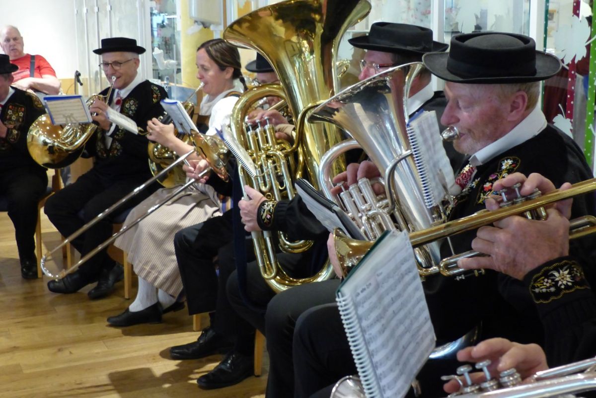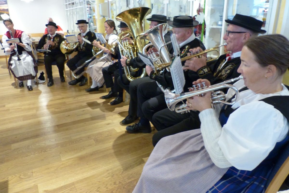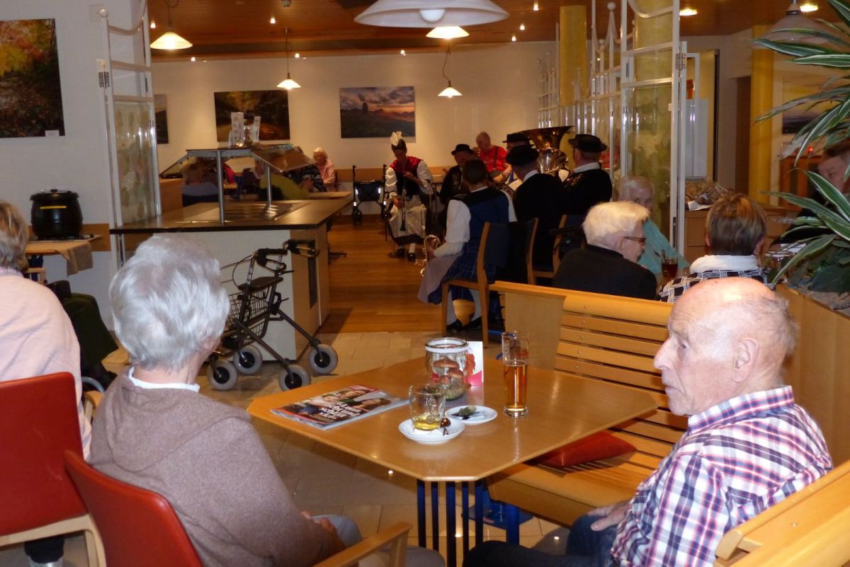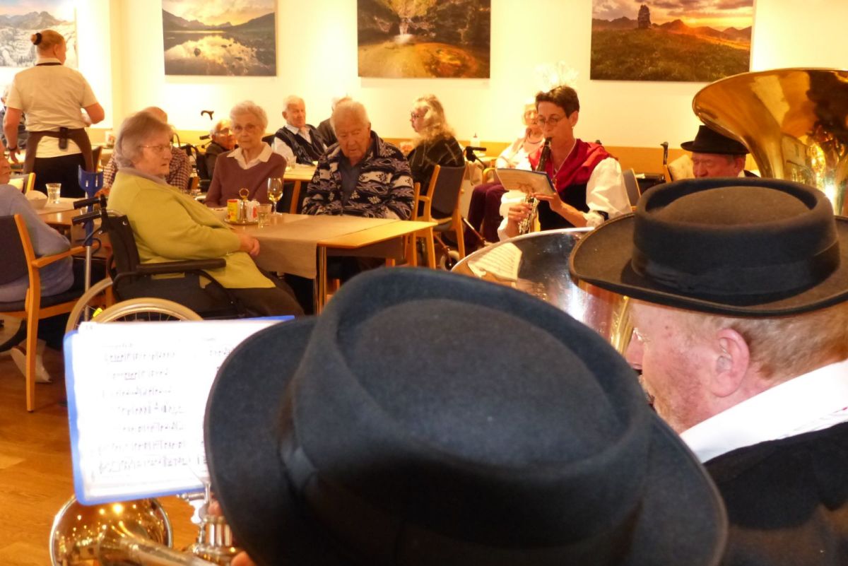 Zum Mittagessen erwartete die Bewohner:innen zur Feier der Älplerchilbi ein musikalisches Ständchen der 9er Musik Kerns. Am späteren Nachmittag kamen die Wilden "Hudee & Läsi" vorbei und trugen ihre Sprüche vor. Viele Bewohner:innen haben sich bereits die ganze Woche auf diesen Tag gefreut.